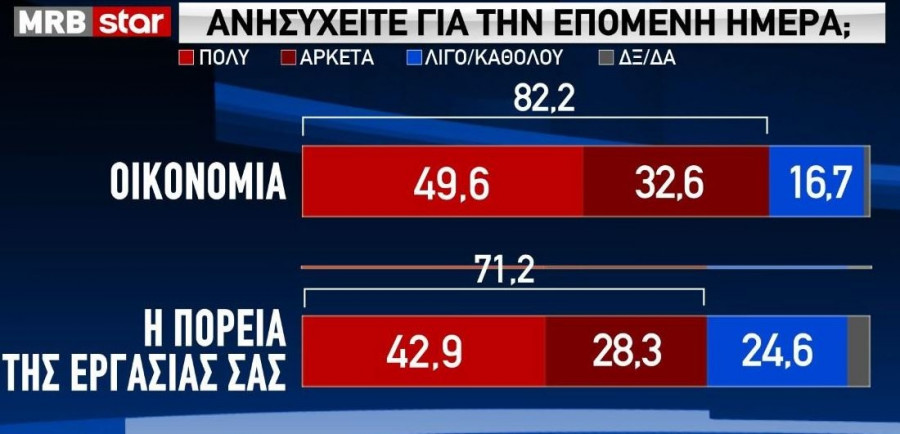 Το 82,2% ανησυχεί για την οικονομία και το 71,2% για την πορεία της εργασίας του.