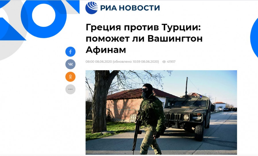 Την δυσαρέσκεια της Μόσχας για τις επιλογές της Αθήνας στο πεδίο της εξωτερικής πολιτικής της φαίνεται πως αντανακλά ανάλυση που δημοσιεύτηκε στο κρατικό ρωσικό πρακτορείο ειδήσεων ΡΙΑ-Νόβοστι και αναφέρεται στο ενδεχόμενο μίας σύγκρουσης Ελλάδας-Τουρκίας.