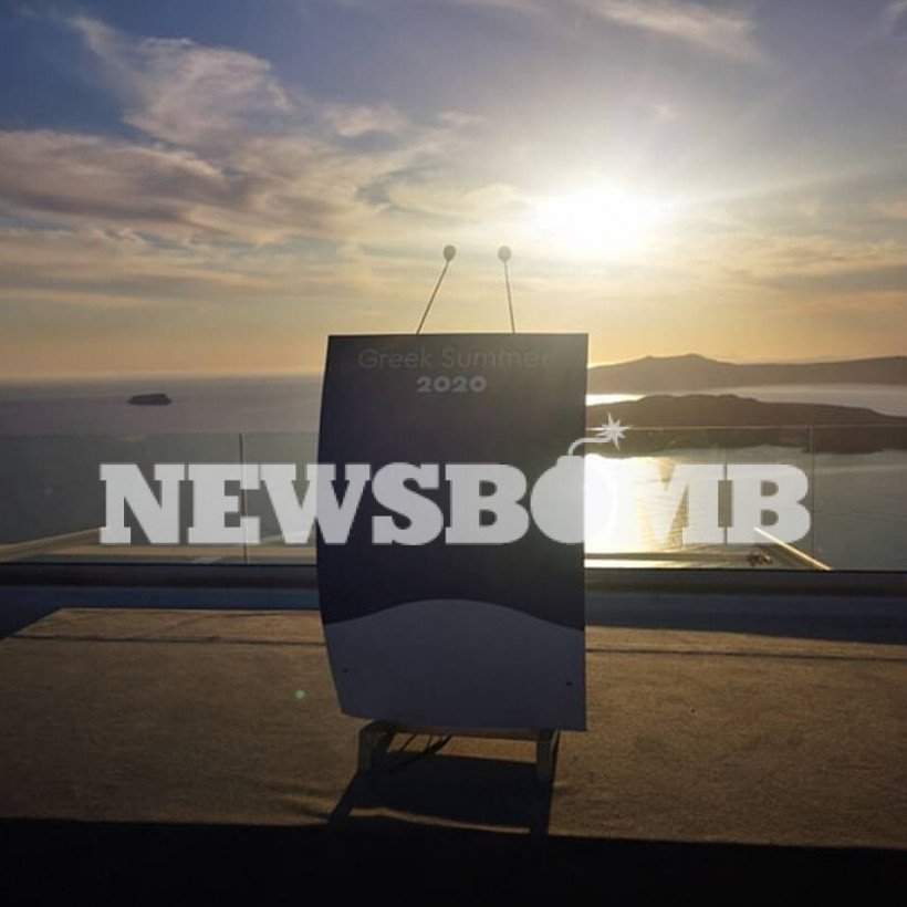 Με φόντο την καλντέρα της Σαντορίνης και το ηλιοβασίλεμα, που έχει αποτυπωθεί στο μυαλό και τις φωτογραφίες εκατομμυρίων επισκεπτών, ο πρωθυπουργός στοχεύει να μεγιστοποιήσει τα οφέλη από την προβολή της χώρας.