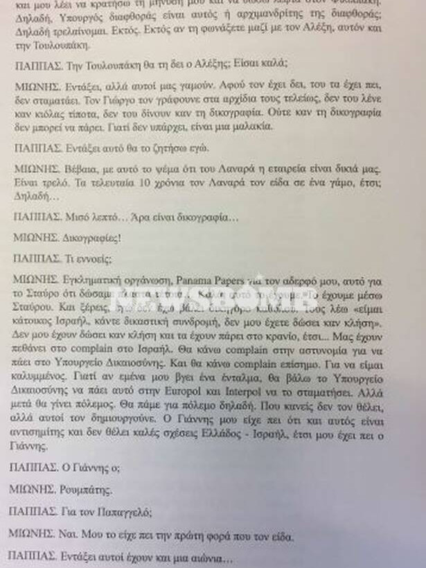 Δείτε την απομαγνητοφώνηση του διαλόγου, όπως κατατέθηκε στην Προανακριτική Επιτροπή: