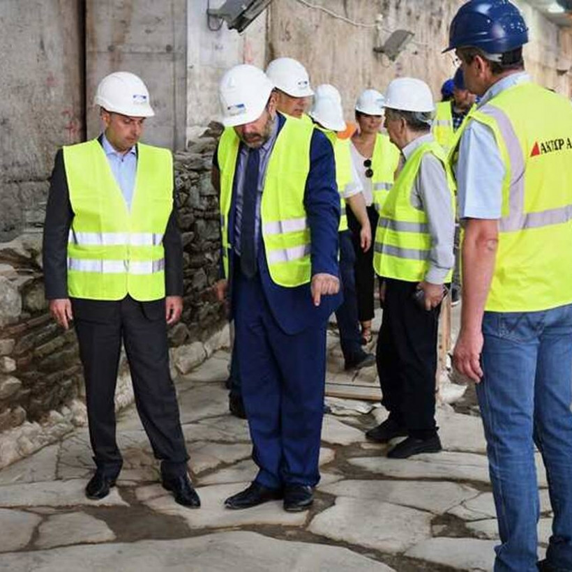 Η περιήγηση του κ. Καραγιάννη ξεκίνησε από το κεντρικό εργοτάξιο του σταθμού Βενιζέλου και το επίπεδο των αρχαιοτήτων, όπου ο Γενικός Γραμματέας Υποδομών ενημερώθηκε για τα αρχαιολογικά ευρήματα που έχουν πλέον αποκαλυφθεί, ύστερα από την ολοκλήρωση των εργασιών απομάκρυνσης της άμμου με την οποία είχαν καλυφθεί για την προστασία τους από τυχόν φθορές στο πλαίσιο των κατασκευαστικών έργων. Στη συνέχεια, ο κ. Καραγιάννης παρακολούθησε τις πρόδρομες εργασίες για την κατασκευή της νότιας πρόσβασης του σταθμού Βενιζέλου που βρίσκονται σε εξέλιξη.