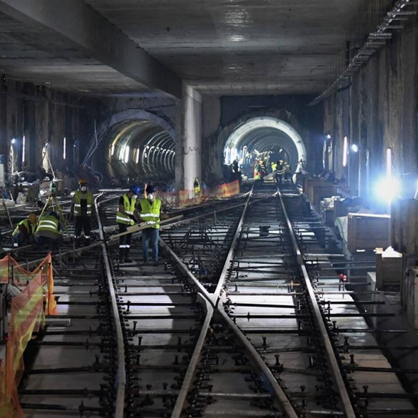 Στο επίπεδο τροχιών του σταθμού, ο Γενικός Γραμματέας Υποδομών παρακολούθησε τις εργασίες σκυροδέτησης κλίνης τροχιάς που εκτελούνται στη σήραγγα του μεσοδιαστήματος Ανάληψη – 25ης Μαρτίου, καθώς και τις τελευταίες εργασίες τακτοποίησης της διασταύρωσης τροχιών στον σταθμό Ανάληψη.