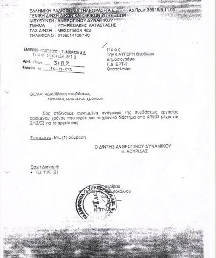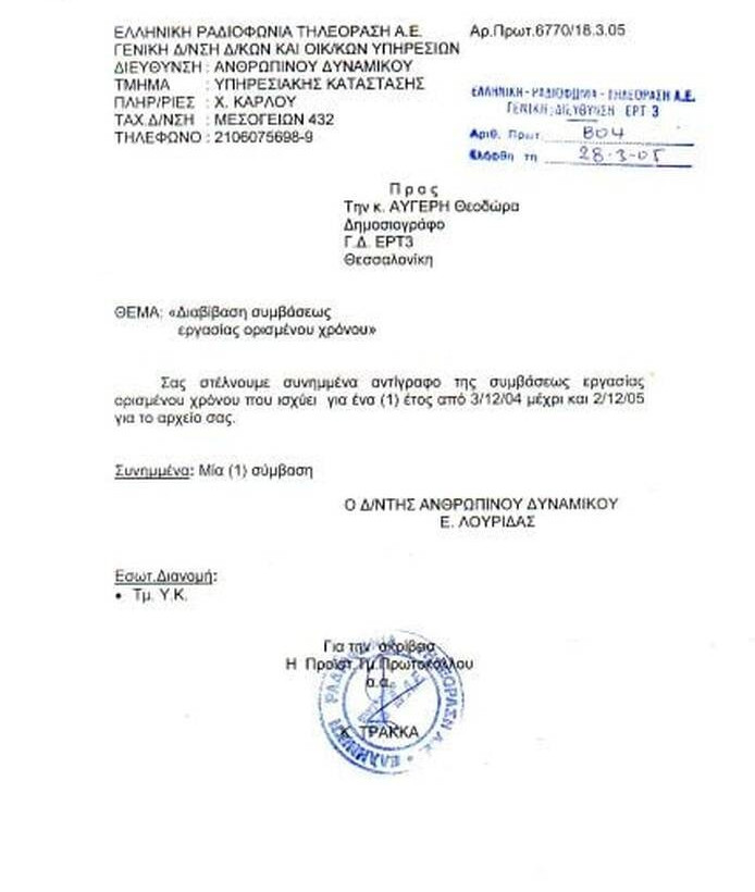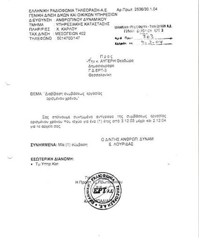 Επειδή το δικό μου σπίτι δεν πλημμύρισε (όπως της κυρίας Ράικου που χάθηκαν οι συμβάσεις του άντρα της με τη NOVARTIS) έχω κρατημένες τις συμβάσεις μου από το 1997 με την ΕΡΤ!