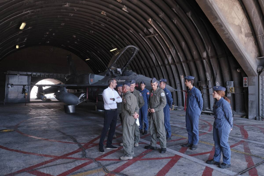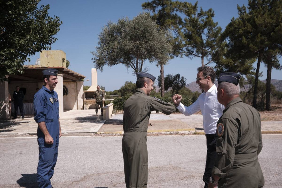 Ο Πρωθυπουργός Κυριάκος Μητσοτάκης βρέθηκε το πρωί του Σαββάτου, 15 Αυγούστου, στην 115 Πτέρυγα Μάχης της Πολεμικής Αεροπορίας στην Αεροπορική Βάση της Σούδας.