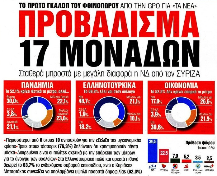 Δημοσκόπηση GPO: 17 μονάδες η διαφορά ΝΔ-ΣΥΡΙΖΑ - Τι λένε οι πολίτες για τα ελληνοτουρκικά