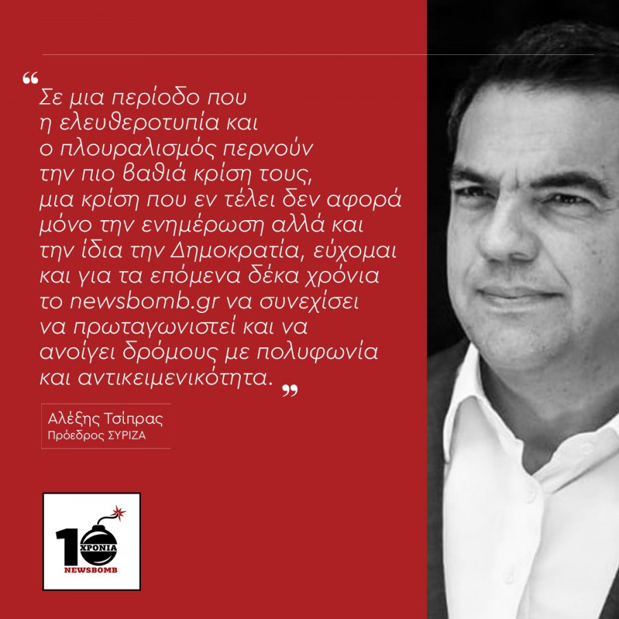 10 χρόνια Newsbomb.gr: Οι ευχές του αρχηγού της Αξιωματικής Αντιπολίτευσης, Αλέξη Τσίπρα