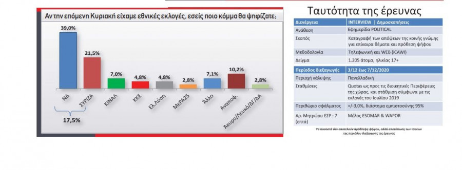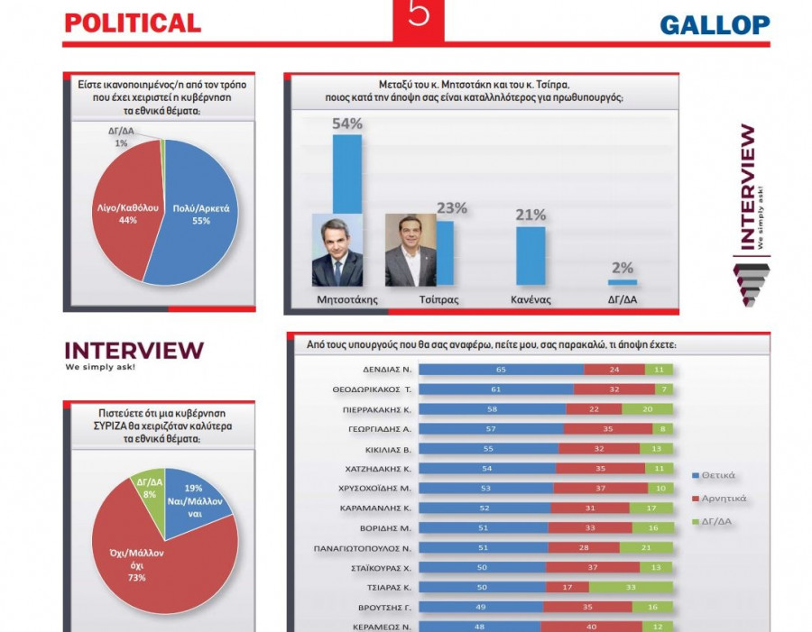 Tι δείχνει ο γκάλοπ της Interview που έγινε για λογαριασμό της ηλεκτρονικής εφημερίδας Political για Ν.Δ., αντιπολίτευση και υπουργούς