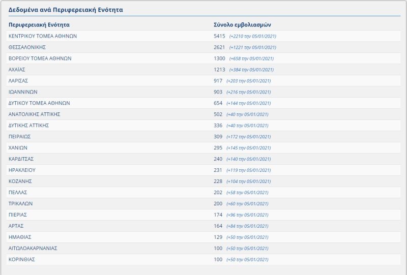 Οι εμβολιασμοί ανά Περιφερειακή Ενότητα