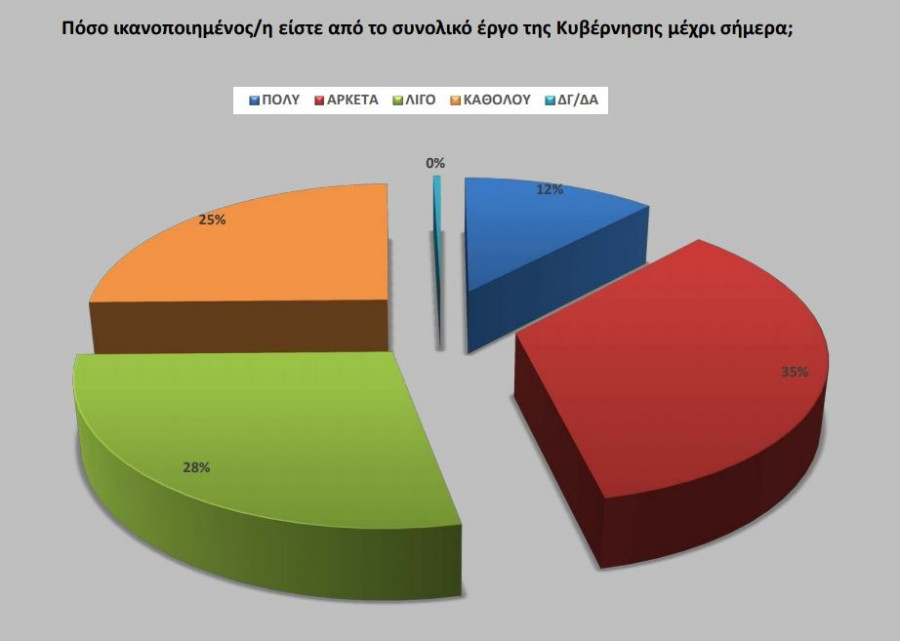 Για την αντιπολίτευση του ΣΥΡΙΖΑ ικανοποιημένο δηλώνει το 12%.