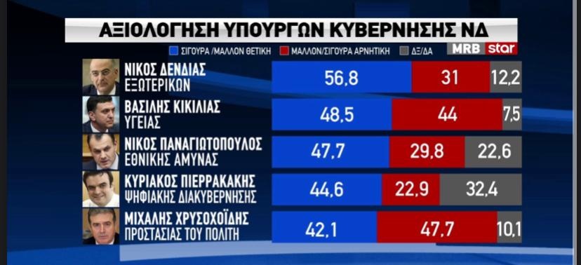Δημοσκόπηση MRB: Δένδιας και Κικίλιας οι πιο δημοφιλείς υπουργοί