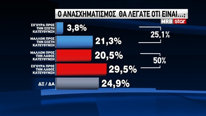 Ενδιαφέρον προκαλούν οι απαντήσεις των Ελλήνων πολιτών στις ερωτήσεις για τα φλέγοντα θέματα της επικαιρότητας σε δημοσκόπηση της MRB.