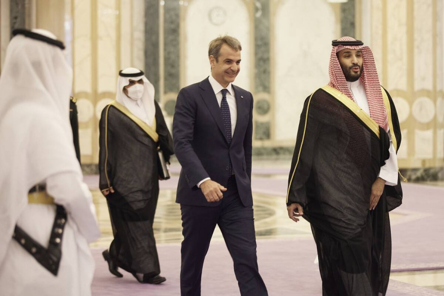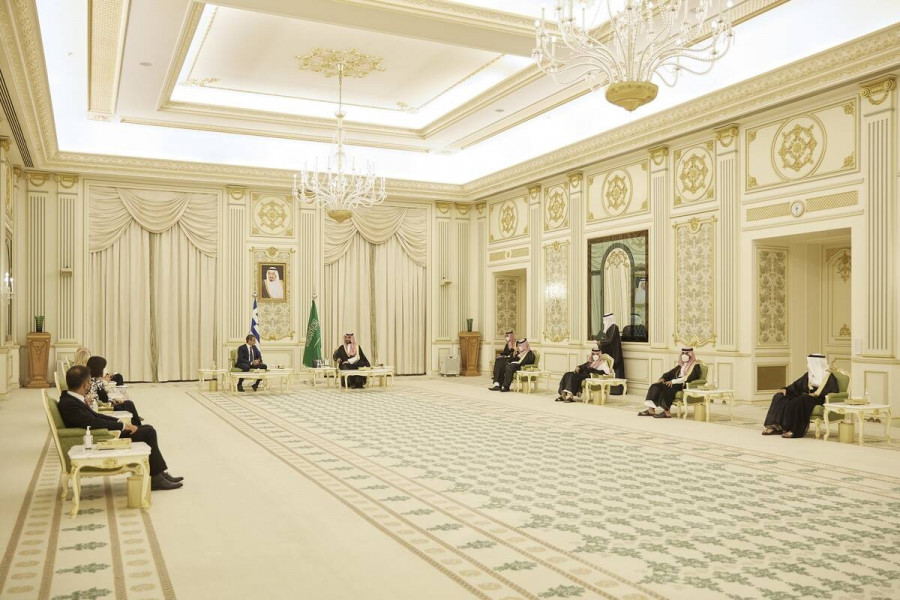 Ο Πρωθυπουργός Κυριάκος Μητσοτάκης συναντήθηκε με τον Διάδοχο του θρόνου της Σαουδικής Αραβίας, Πρίγκιπα Mohammed bin Salman bin Abdulaziz Al Saud, στο ανάκτορο Al Yamamah, στο Ριάντ.
