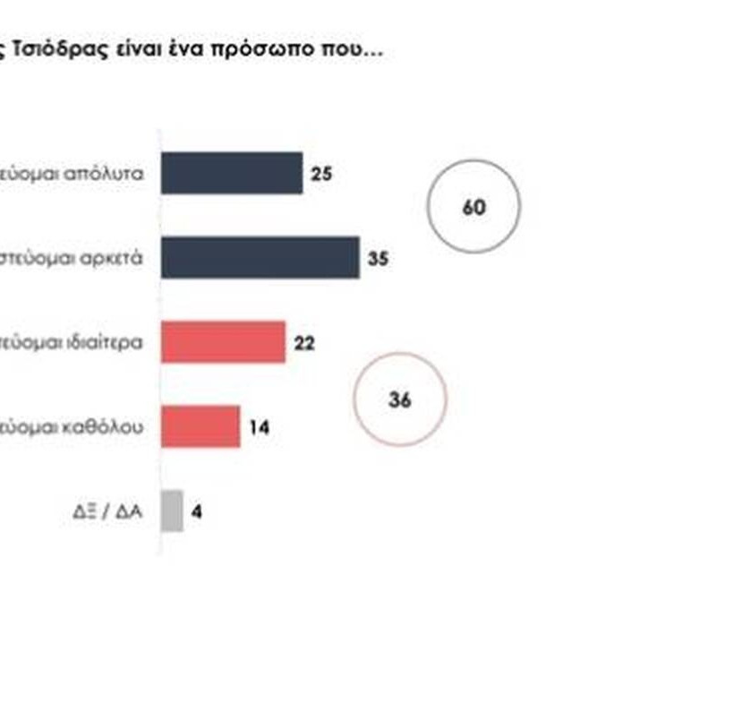 Έντονη συζήτηση έχει υπάρξει και για τον Σωτήρη Τσιόδρα, το ρόλο και τη στάση του, την περίοδο της πανδημίας. Σε ποσοστό 60% οι πολίτες δηλώνουν πως τον εμπιστεύονται απόλυτα (25%) ή τον εμπιστεύονται αρκετά (35%). Αντίθετα ένα 36% δηλώνει πως δεν του έχει ιδιαίτερη εμπιστοσύνη (22%) ή δεν τον εμπιστεύεται καθόλου (14%).