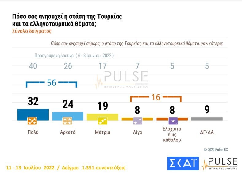 Η δημοσκόπηση διεξήχθη πανελλαδικά το διάστημα από 11 έως 13 Ιουλίου 2022 και συμμετείχαν 1.351 πολίτες κάθε ηλικίας.