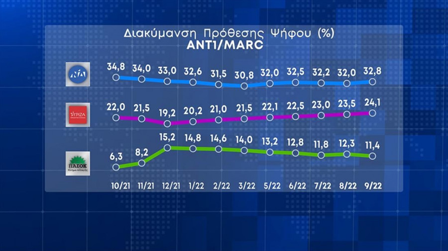 Δημοσκόπηση Marc: Παραμένει η διαφορά Νέας Δημοκρατίας και ΣΥΡΙΖΑ