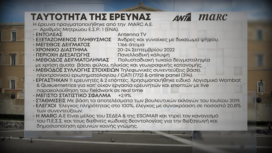 Αποτίμηση των παρουσιών Κυριάκου Μητσοτάκη και Αλέξη Τσίπρα στη ΔΕΘ αλλά και εκτίμηση της πρόθεσης ψήφου των πολιτών μετά τα προγράμματα που εξήγγειλαν ο πρωθυπουργός και ο αρχηγός της αξιωματικής αντιπολίτευσης στη δημοσκόπηση της Marc η οποία παρουσιάστηκε στο κεντρικό δελτίο ειδήσεων του ΑΝΤ1.