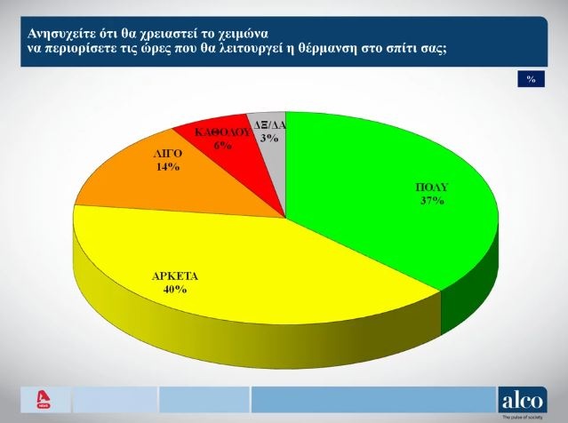 Το 90% θεωρεί ότι θα χρειαστεί να περικόψει την θέρμανση κατά τη διάρκεια του χειμώνα ενώ το 71% δηλώνει ότι λόγω της ακρίβειας έχει ήδη περιορίσει την αγορά βασικών αγαθών.