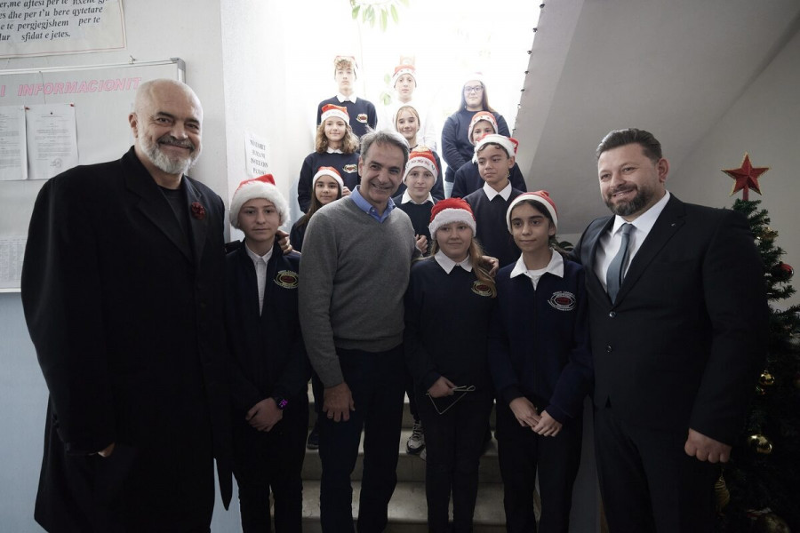 Στη συνέχεια, ο Κυριάκος Μητσοτάκης και ο Edi Rama, επισκέφθηκαν το Ενιαίο Μεσαίο Σχολείο Δερβιτσάνης, όπου ξεναγήθηκαν στις εγκαταστάσεις και είχαν την ευκαιρία να συνομιλήσουν με παιδιά και να ακούσουν τα χριστουγεννιάτικα κάλαντα. Στο σχολείο διδάσκεται η ελληνική γλώσσα. Αποτελείται από δημοτικό, γυμνάσιο και λύκειο, ενώ φοιτούν συνολικά 113 παιδιά. Χώροι του έχουν διακοσμηθεί από ομάδα Ελλήνων γραφιστών. Μετά την επίσκεψη στο σχολείο, ο Πρωθυπουργός και ο κ. Rama μετέβησαν στον Ιερό Ναό Κοιμήσεως της Θεοτόκου.