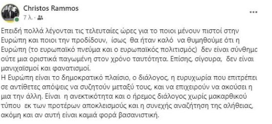 Αναλυτικά η ανάρτησή του Χρήστου Ράμμου: