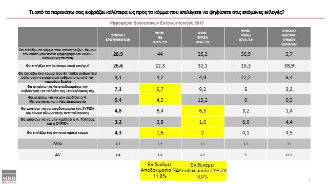 Όσο για εκείνους που υποστήριξαν ότι θα αλλάξουν επιλογή από την αρχική τους εξαιτίας της τηλεμαχίας, το 1.1% δηλώνει ότι θα ψηφίσει το κόμμα της αξιωματικής αντιπολίτευσης, έναντι του 0.5% που δηλώνει ότι θα ψηφίσει Νέα Δημοκρατία.