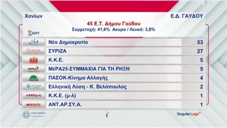 Αναλυτικά τι έβγαλε η κάλπη των εκλογών στη Γαύδο