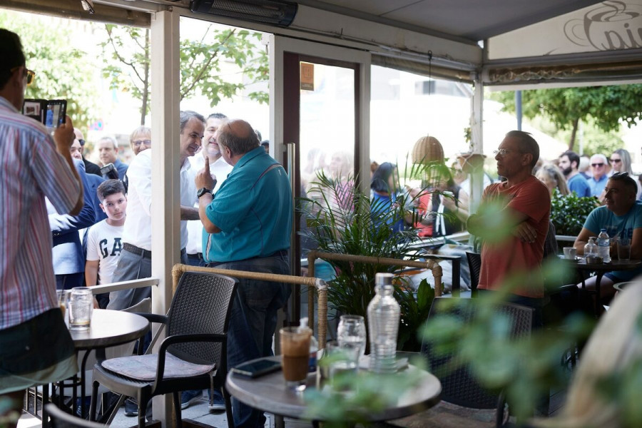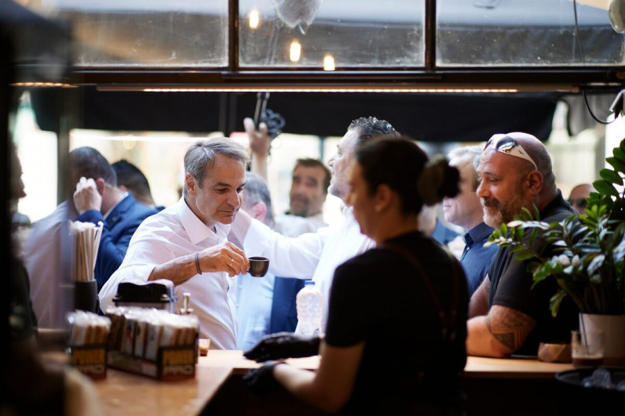 Στην τελική ευθεία για τις εκλογές στις 25 Ιουνίου, ο πρόεδρος της ΝΔ έκανε το πρωί περιοδεία στο Παλαιό Φάληρο.