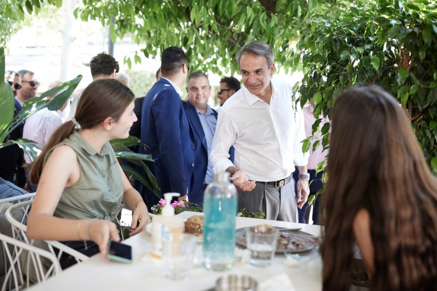 Ο Κυριάκος Μητσοτάκης περιηγήθηκε στην τοπική αγορά και συνομίλησε με καταστηματάρχες και περαστικούς.
