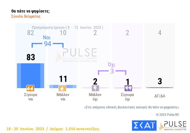 Δημοσκόπηση Pulse: Στις 19,5 μονάδες η διαφορά μεταξύ ΝΔ και ΣΥΡΙΖΑ - Όλα τα σενάρια
