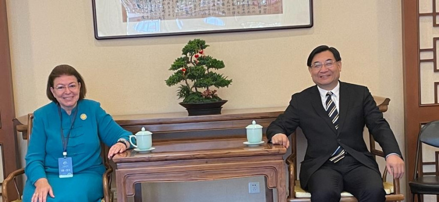 Η υπουργός Πολιτισμού Λίνα Μενδώνη, κεντρική ομιλήτρια στο 6ο Taihe Forum στο Πεκίνο