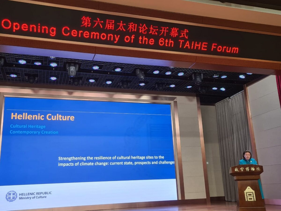 Η Υπουργός Πολιτισμού Λίνα Μενδώνη ήταν η κεντρική ομιλήτρια στο 6ο Taihe Forum, στο Πεκίνο, με θέμα «Διεθνής διάλογος, η συνεργασία και η ανταλλαγή απόψεων, για την προστασία της πολιτιστικής κληρονομιάς». Το 6ο Παγκόσμιο Taihe Forum διεξήχθη στο Μουσείο του Παλατιού (Palace Museum), στην Απαγορευμένη Πόλη, με τη συμμετοχή ειδικών από πανεπιστημιακά και ερευνητικά ιδρύματα από όλο τον κόσμο, και εκπροσώπους διεθνών οργανισμών.