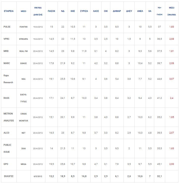Αναλυτικά ο πίνακας δημοσκοπήσεων πριν τις εκλογές: