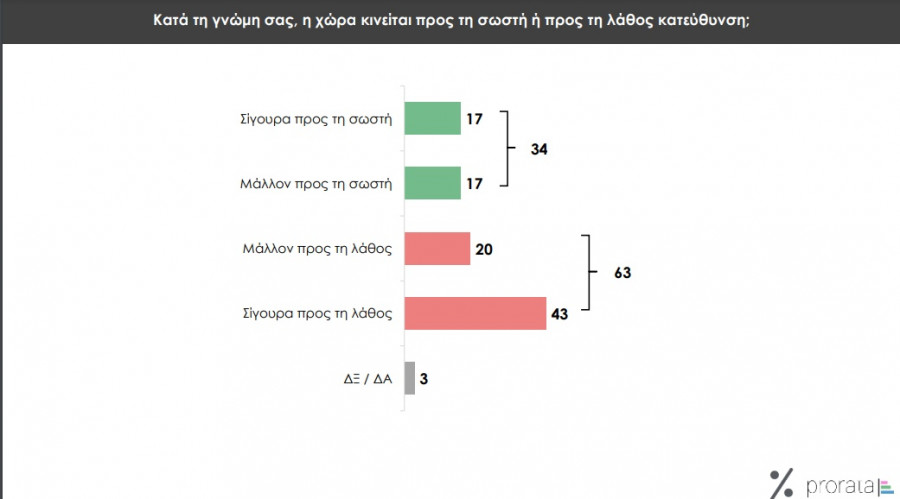 Στο ερώτημα «Κατά τη γνώμη σας, η χώρα κινείται προς τη σωστή ή προς τη λάθος κατεύθυνση;» τα αποτελέσματα της δημοσκόπησης είναι τα εξής: