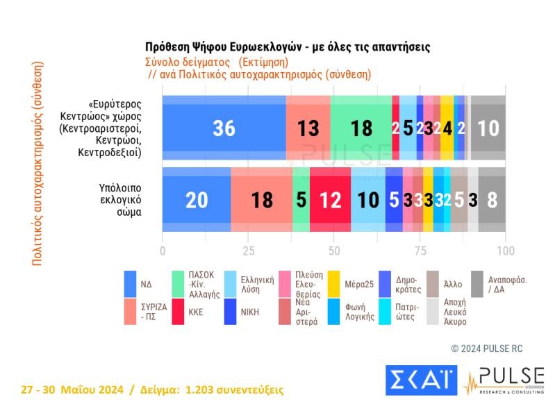 Στο 14% είναι η διαφορά της Νέας Δημοκρατίας έναντι του δεύτερου ΣΥΡΙΖΑ σύφμωνα με τη δημοσκόπηση της PULSE, 10 ημέρες πριν τη διεξαγωγή των ευρωεκλογών, την Κυριακή, 9 Ιουνίου.