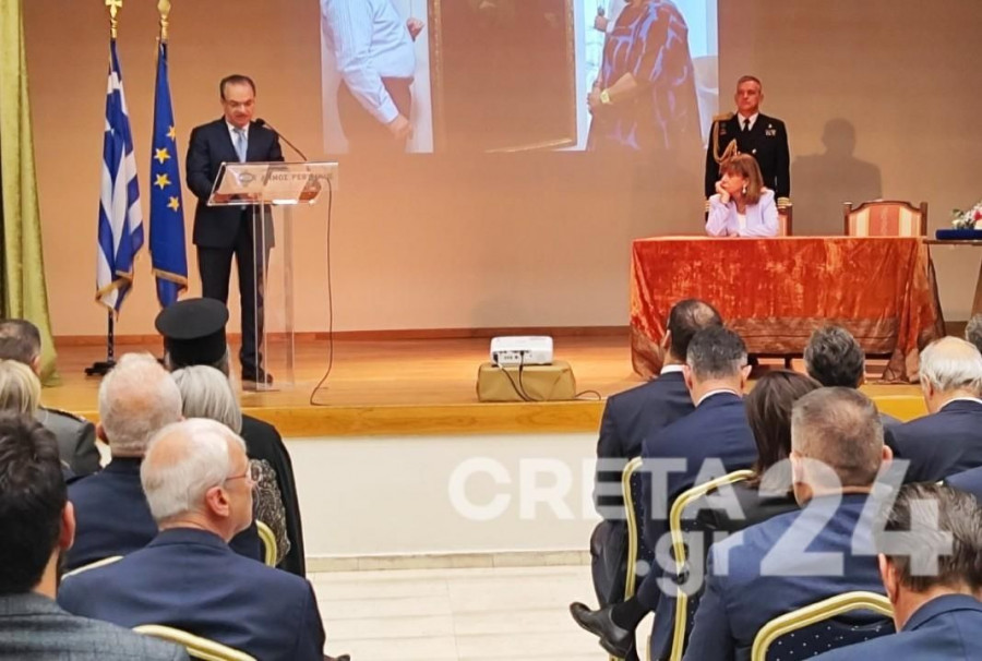 Το ψήφισμα της ανακήρυξης της Προέδρου της Δημοκρατίας ως επίτημη δημότης Ρεθύμνου ανέγνωσε ο Πρόεδρος του Δημοτικού Συμβουλίου Ρεθύμνου, Νίκος Αγριμάκης και ακολούθησε η ομιλία του Δημάρχου Ρεθύμνου, Γιώργου Μαρινάκη.
