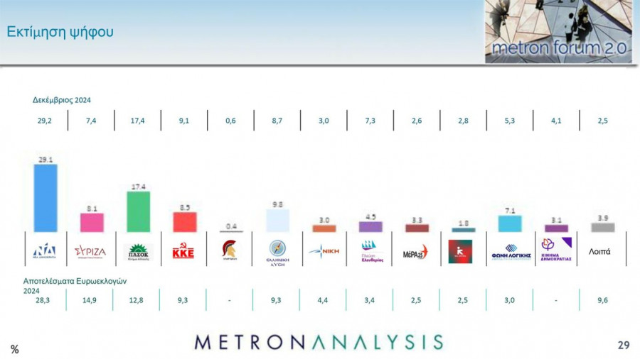 Δημοσκόπηση Metron Analysis: Ποια κόμματα ανεβαίνουν - Ανατροπή στον δημοφιλέστερο