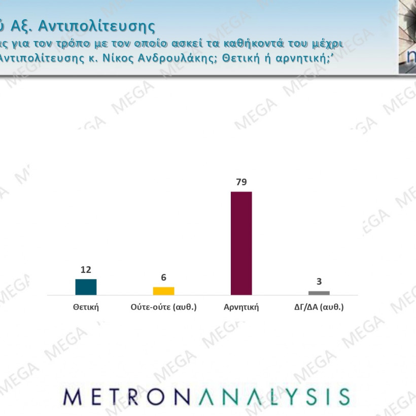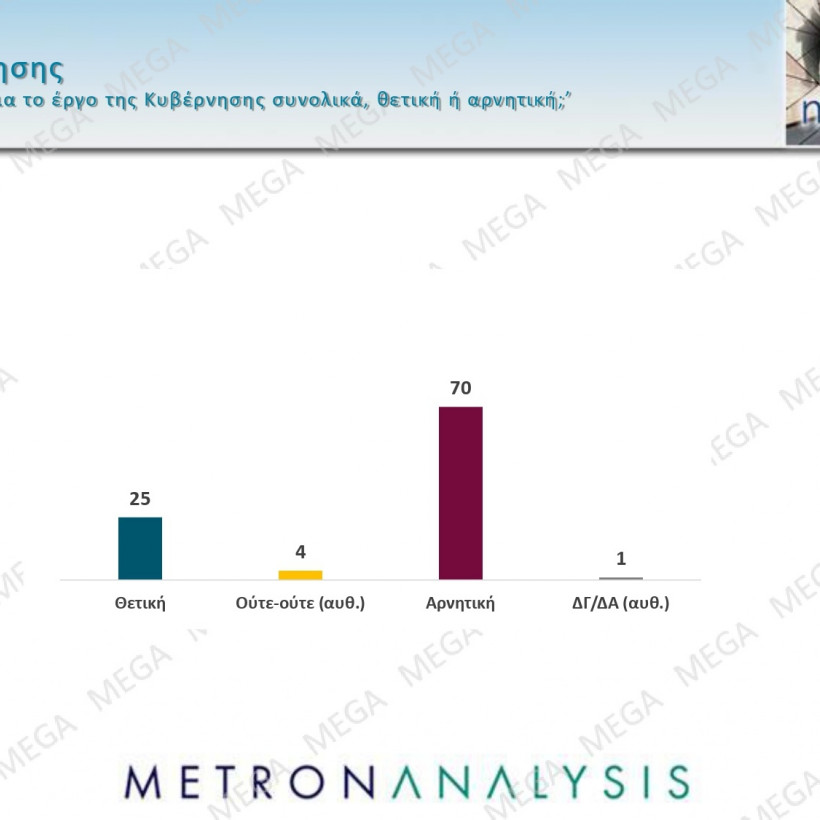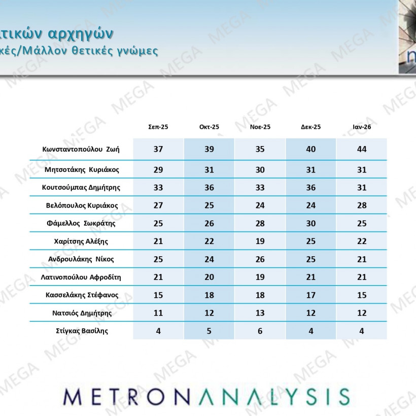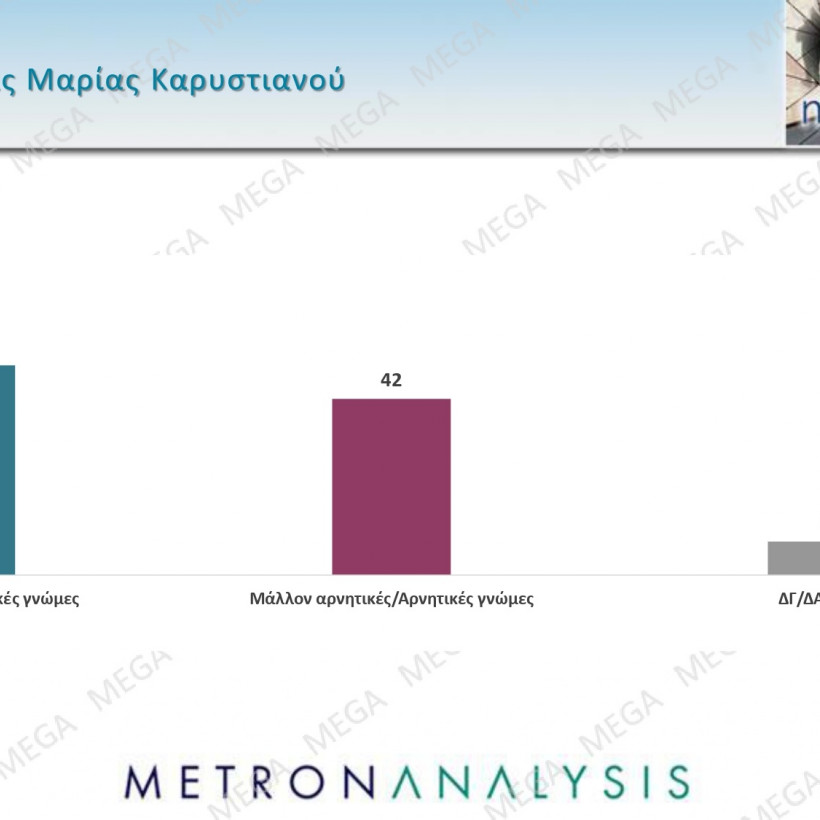 Ανοίγει η «ψαλίδα» ανάμεσα στη Νέα Δημοκρατία και την αντιπολίτευση, σύμφωνα με τη δημοσκόπηση της Metron Analysis που παρουσιάστηκε στο αποψινό (22/01) κεντρικό δελτίο του MEGA.