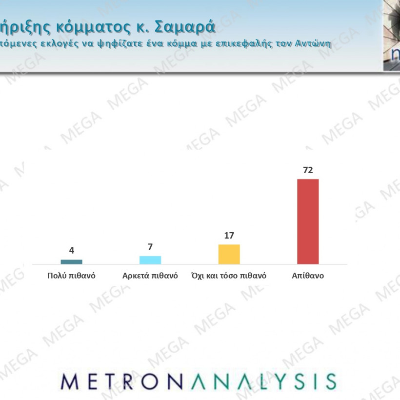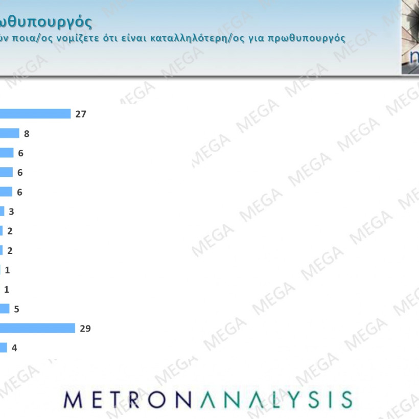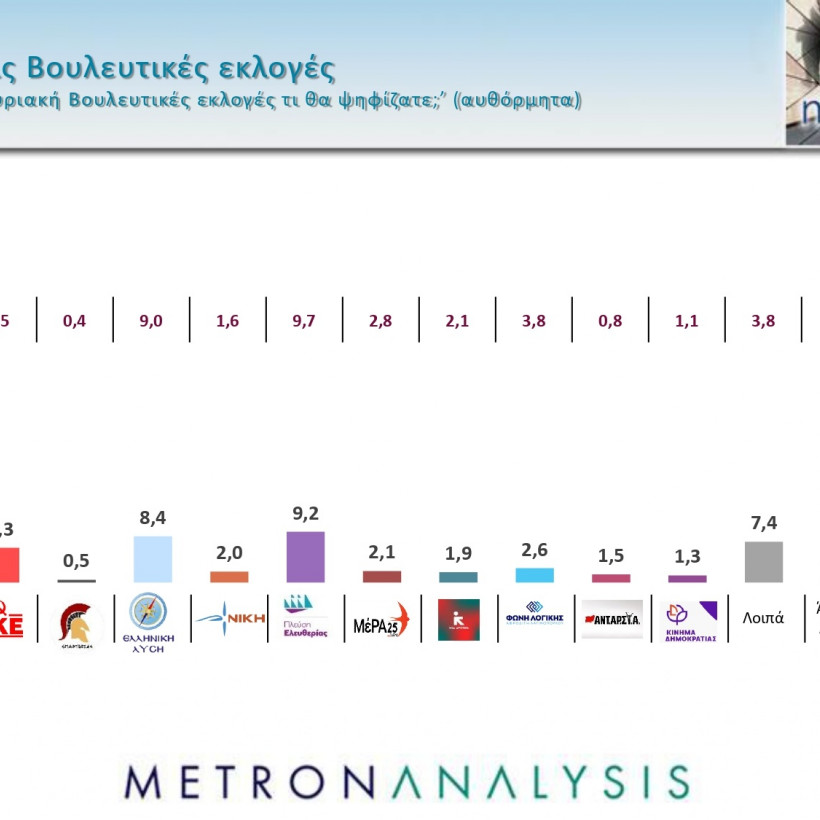 Metron Analysis: Μπροστά με διαφορά η Νέα Δημοκρατία, όλα τα υπόλοιπα κόμματα κάτω από το 10%