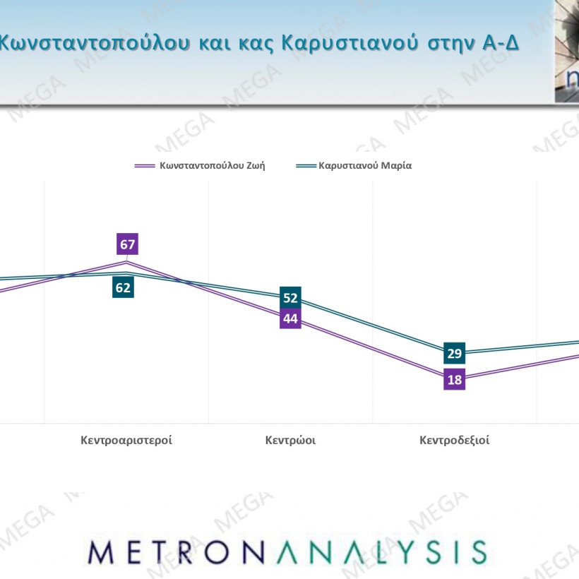 Η Metron Analysis μέτρησε και το «δίδυμο» Καρυστιανού - Κωνσταντοπούλου, με την πρόεδρο της Πλεύσης Ελευθερίας να προηγείται μόνον στην ομάδα των ψηφοφόρων που δηλώνουν «κεντροαριστεροί» και την Μαρία Καρυστιανού να την προσπερνά με διαφορά τόσο στους αριστερούς, όσο και στους κεντρώους και τους κεντροδεξιούς.