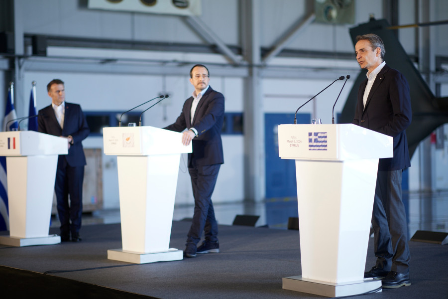 Οι κοινές δηλώσεις των κ.κ. Μητσοτάκη, Μακρόν και Χριστοδουλίδη μετά την τριμερή στην Κύπρο