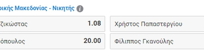 Τα στοιχήματα προβλέπουν για τον Απόστολο Τζιτζικώστα περίπατο στην περιφέρεια Κεντρικής Μακεδονίας. Πηγή: Πηγή: Stoiximan.gr