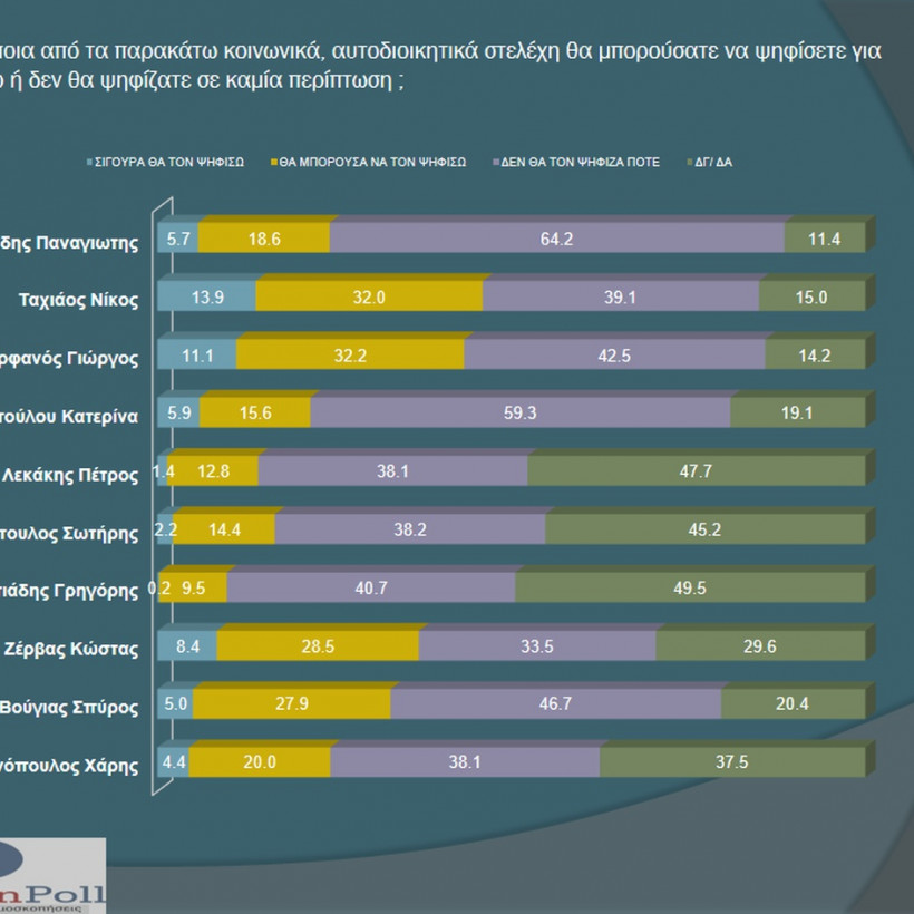 Πρόκειται για τον Ν. Ταχιάο, τον Γ. Ορφανό και τον Κ. Ζέρβα οι οποίοι ενισχύονται στην πρόθεση ψήφου, σε σχέση με τα αποτελέσματα της έρευνας πριν ένα μήνα. Τα ποσοστά που συγκεντρώνουν είναι 16.2%, 14.3% και 12.4% αντίστοιχα, όταν πριν ένα μήνα συγκέντρωναν πάλι με βάση τα αποτελέσματα της έρευνας της OPINION POLL ήταν 15.7%, , 12.3% και 9.8% ! Τα κέρδη τους είναι σημαντικά και έρχονται σαν αποτέλεσμα και της μείωσης των αναποφάσιστων, αλλά και από ένα «ανακάτεμα της τράπουλας».