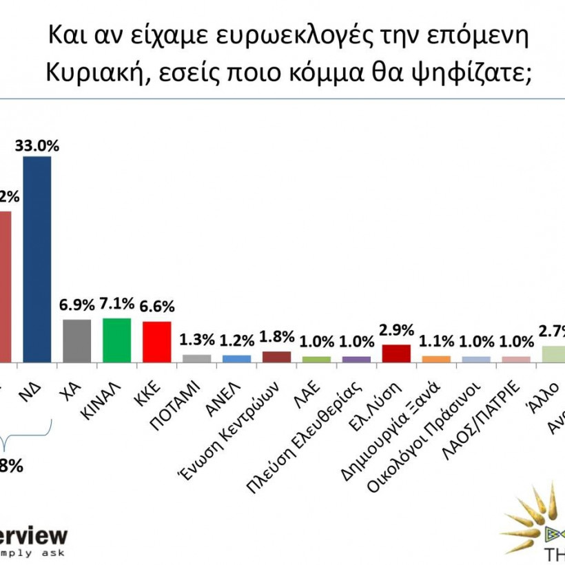 Δημοσκόπηση: Παγιώνεται η διαφορά στις ευρωεκλογές - Έκπληξη το έκτο κόμμα που παλεύει με το 3%