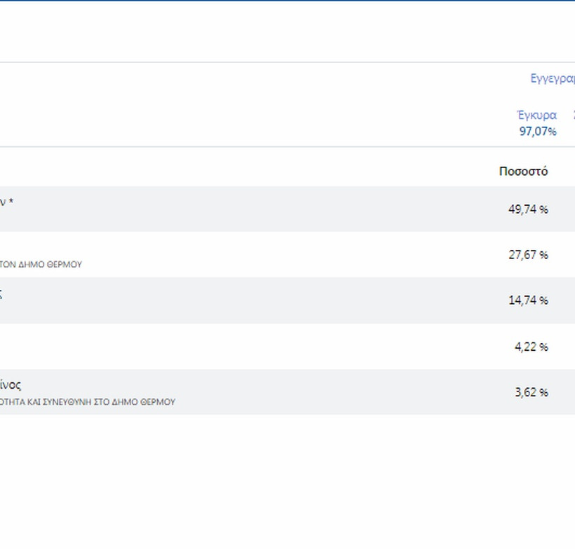 Αποτελέσματα Εκλογών 2019 LIVE: Δήμος Θέρμου Αιτωλοακαρνανίας