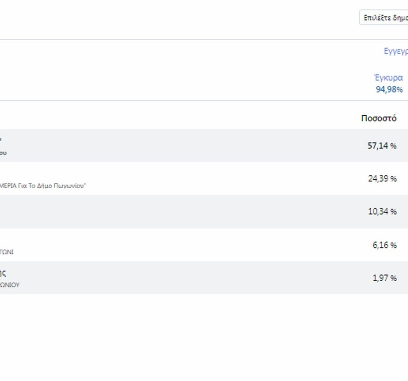 Αποτελέσματα Εκλογών 2019 LIVE: Δήμος Πωγωνίου Ιωαννίνων