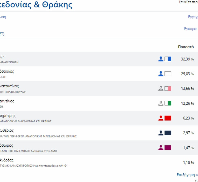 Αποτελέσματα Εκλογών 2019 LIVE: Περιφέρεια Ανατολικής Μακεδονίας - Θράκης