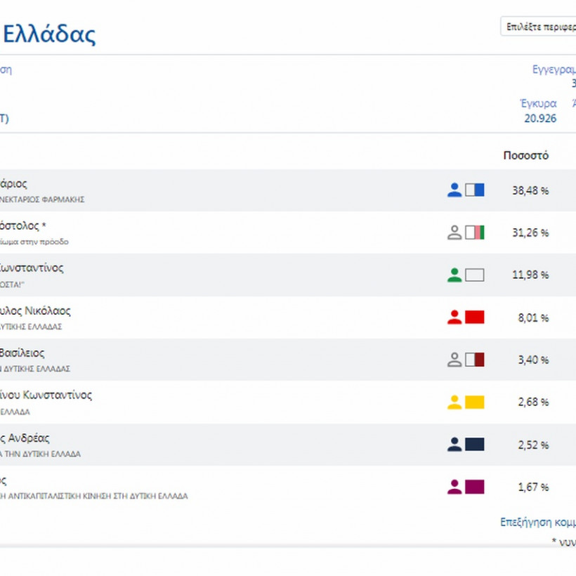 Αποτελέσματα Εκλογών 2019 LIVE: Περιφέρεια Δυτικής Ελλάδας