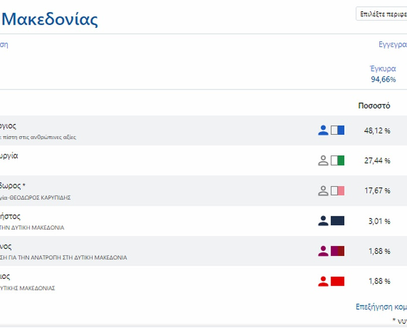 Αποτελέσματα Εκλογών 2019 LIVE: Περιφέρεια Δυτικής Μακεδονίας