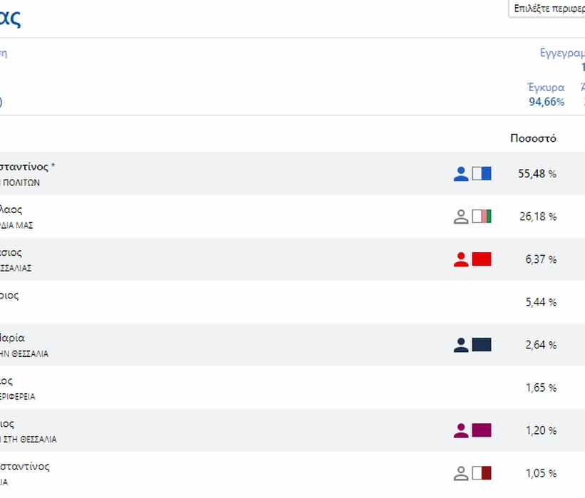 Αποτελέσματα Εκλογών 2019 LIVE: Περιφέρεια Θεσσαλίας