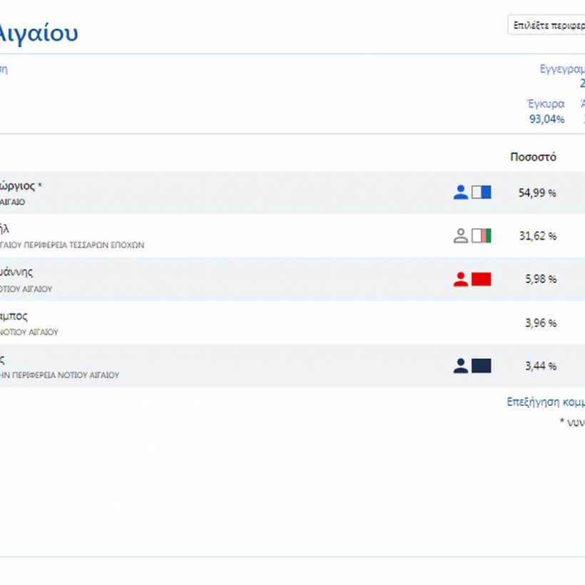 Αποτελέσματα Εκλογών 2019 LIVE: Περιφέρεια Νοτίου Αιγαίου