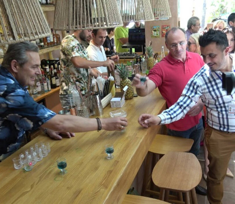 Ο πρόεδρος των ΑΝΕΛ επισκέφτηκε το ολοκαίνουργιο μπαρ που άνοιξαν οι δύο γιοι του στη Βουλιαγμένη, συνομίλησε με δημοσιογράφους και πειραματίστηκε με κοκτέιλ πίσω από τη μπάρα.